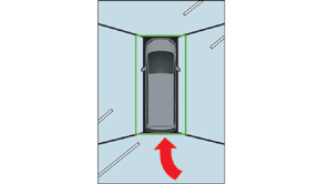 ハンドル位置をそのままにして、ゆっくり前進させます。車両が枠内に入るとチャイムが鳴ります。