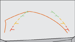 右画面にリヤビューが表示されている場合には予想進路線(橙色)が表示されます。ただし、ハンドルが中立位置の場合は表示されません。