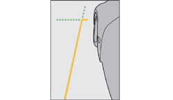 自車位置や駐車スペースへの進入コースが分かりやすい、車両を上から見たような映像をアラウンドビュー左画面に表示します。