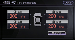 はじめは「**」で表示され、しばらく走行すると各タイヤの空気圧が表示されます。