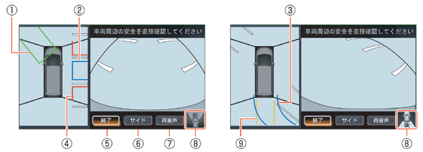 現在のハンドル位置のまま後退した場合の予想進路を表示します。