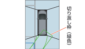 ハンドル位置をそのままにして、ゆっくり後退させます。車両が枠内に入るとチャイムが鳴ります。