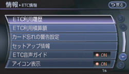 ETCの利用履歴やセットアップ情報の表示、各機能の設定などを行うことができます。 (※1)