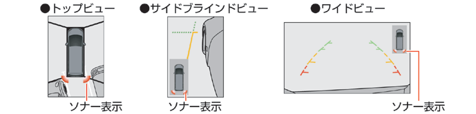 車速10km/h以下で走行中、車両の近くに障害物があるときに、ソナー表示とブザーでお知らせします。アラウンドビューモニターが作動していないときは車両付近に障害物があっても警報音は鳴りません。