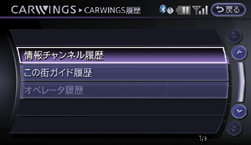 スイッチ ★ → CARWINGS → CARWINGS履歴または、CARWINGSスイッチ ★ → CARWINGS履歴を選びます。