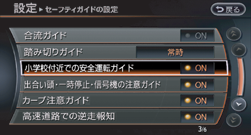 ナビゲーション → セーフティガイドの設定を選ぶ