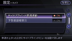 自動OFF機能の設定がONのときは、車速が約18km/h以上になると自動的にサイドブラインドモニター画面から前に表示されていた画面に戻ります。