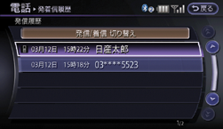 発信/着信切り替えを選ぶと、発信履歴 → 着信履歴 → 不在着信履歴に切り替わります。