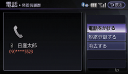 走行中は発信/着信/不在着信の履歴リストの1~5番までを選ぶことができます。