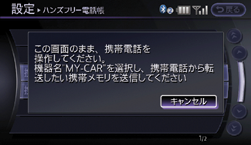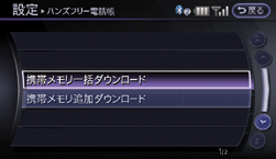 携帯電話のメモリを読み出して、ハンズフリー電話帳に登録します。ケーブル接続の携帯電話5台、Bluetooth®登録された携帯電話5台まで登録できます。(1台あたり最大1000件)