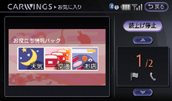 おまかせ再生( おまかせ再生 ) カーウイングス情報センターがおすすめ情報を、場所や時間に応じて自動的に提供するサービスです。
