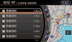 画面上のVICSマークを選ぶと、交通障害・規制情報の詳しい内容がわかります。