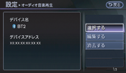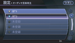 表示されるリストには、ハンズフリーフォンとして登録した携帯電話機も表示されます。必ずBluetooth®オーディオ機器として登録した機器を選んでください。