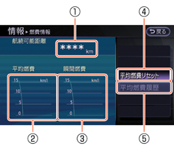 表示されている平均燃費をリセットします。リセットすると、平均燃費履歴に保存されます。