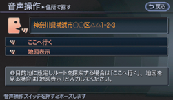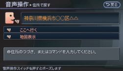 「神奈川県横浜市○○区△△」とコマンドを認識し、「コマンドをどうぞ」“ピッ”というガイドがあります。