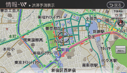 指定した日時の交通情報を表示することができます。また、カーウイングス情報センターに接続して最新の予測交通情報をダウンロードすることもできます。