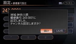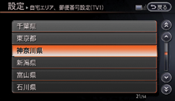 メニュー → 設定 → 自宅エリア、郵便番号設定(TV1)を選ぶ