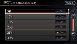 ナビゲーション → 交通情報・VICSの設定 → 図形情報の割込み時間を選ぶ