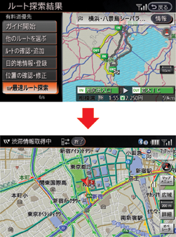 最新の交通情報がダウンロードされ、ルート探索結果画面が表示されます。