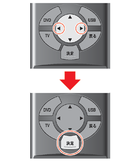 画面上部の項目は、後席リモコンのセレクトスイッチの左右を押して選び、決定を押します。