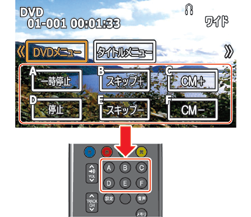 画面下部の項目は、左上のアルファベットに対応した後席リモコンのA〜Fを押します。