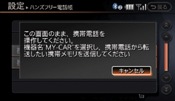 携帯電話のメモリを読み出して、ハンズフリー電話帳に登録します。ケーブル接続の携帯電話5台、Bluetooth®登録された携帯電話5台まで登録できます。(1台あたり最大1000件)
