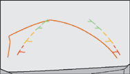 カメラで撮影できない領域(トップビュー境目)が黒色で表示されます。トップビュー境目は、電源ポジションをONにして最初アラウンドビューモニターを表示したときに7秒間黄色で強調表示できます。