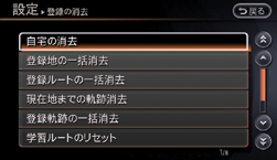 登録した場所やルートなどを一括で消去ができます。 一度消去した場所やルートなどは復帰できません。十分に確認してから消去してください。