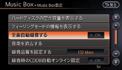 選ぶごとに全曲自動録音のON/OFFが切り替わります。