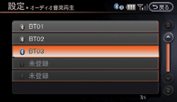 表示されるリストには、ハンズフリーフォンとして登録した携帯電話機も表示されます。必ずBluetooth®オーディオ機器として登録した機器を選んでください。
