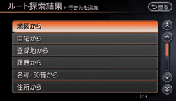 を選ぶと、設定済みの目的地が経由地となり、追加する地点が目的地となります。