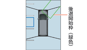 ハンドル位置をそのままにして、ゆっくり後退させます。車両が枠と並行になるとチャイムが鳴ります。