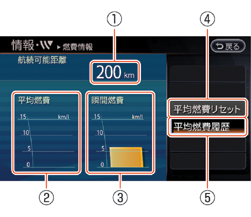 表示されている平均燃費をリセットします。リセットすると、平均燃費履歴に保存されます。
