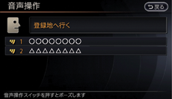 登録地や短縮ダイヤルなど、コマンドによってはナビに保存された情報がリスト表示され、番号を発話して操作します。