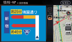 光ビーコンは主に進行方向の一般道路と高速道路の、渋滞・リンク旅行時間・規制・駐車場情報・区間旅行時間などを表示します。