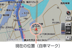 ルートガイド画面を表示中に現在地スイッチを押すと、現在地の地図画面とルートガイド画面を切り替えます。
