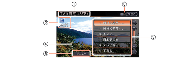 TV1(自宅エリア)またはTV2(おでかけエリア)のどちらかを表示します。