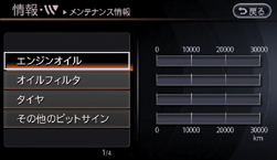 走行距離を設定してメンテナンスをお知らせする画面を表示します。4 種類の項目に対して設定ができます。