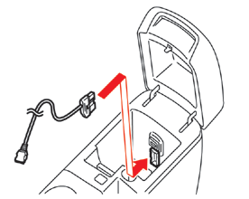 センターコンソール内にあります。コンソールボックスを開けて、接続端子のカバーを開けます。
