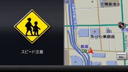 小学校付近走行中に、速度、ブレーキ・アクセルの状態に応じて画面表示と音声でガイドします。