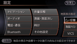 スタンダードビューとバードビューの切り替え、2画面の設定ができます。