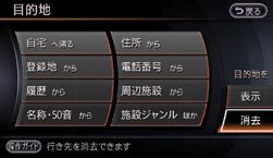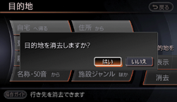 目的地と経由地が消去されます。また目的地マーク、出発地マークも地図画面から消去されます。