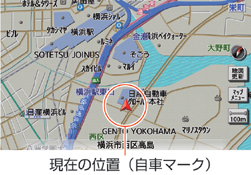 地図を動かした後や、メニュー画面から現在地を表示します。