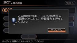 上の画面が表示されたらBluetooth®オーディオ機器または携帯電話機で登録操作を行ってください。 (※3)