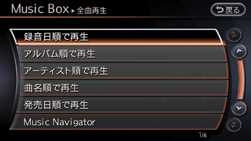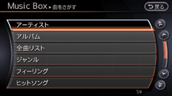 明るい曲、いやされる曲、せつない曲、ノリノリな曲の一覧から選曲できます。