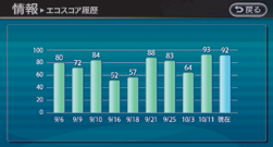 現在のエコスコアを履歴として保存し、リセットします。USBメモリ挿入時に選ぶと、運転診断情報をUSBメモリに保存できます。USBメモリに保存したデータを使って、E1 Grand Prixに参加できます。