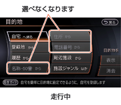 安全に運転をしていただくために、走行中は操作できない機能があります。