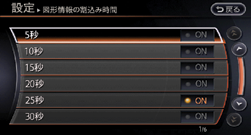 が点灯し、図形情報の割り込み時間が設定されます。図形情報の割り込み表示時に、設定時間を過ぎると元の画面に戻ります。