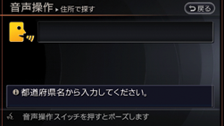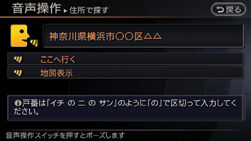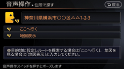 「神奈川県横浜市○○区△△」とコマンドを認識し、「コマンドをどうぞ」“ピッ”というガイドがあります。