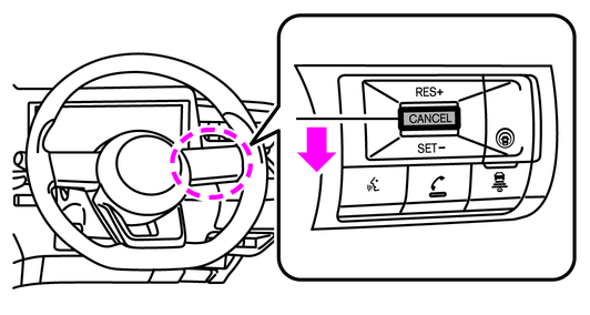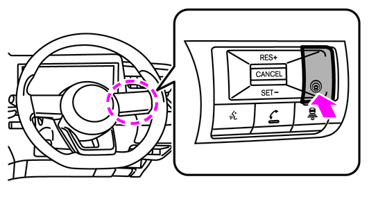ハンドルにあるプロパイロット(ナビリンク機能付)スイッチを1.5秒以上押して定速制御機能をON(待機状態)にします。